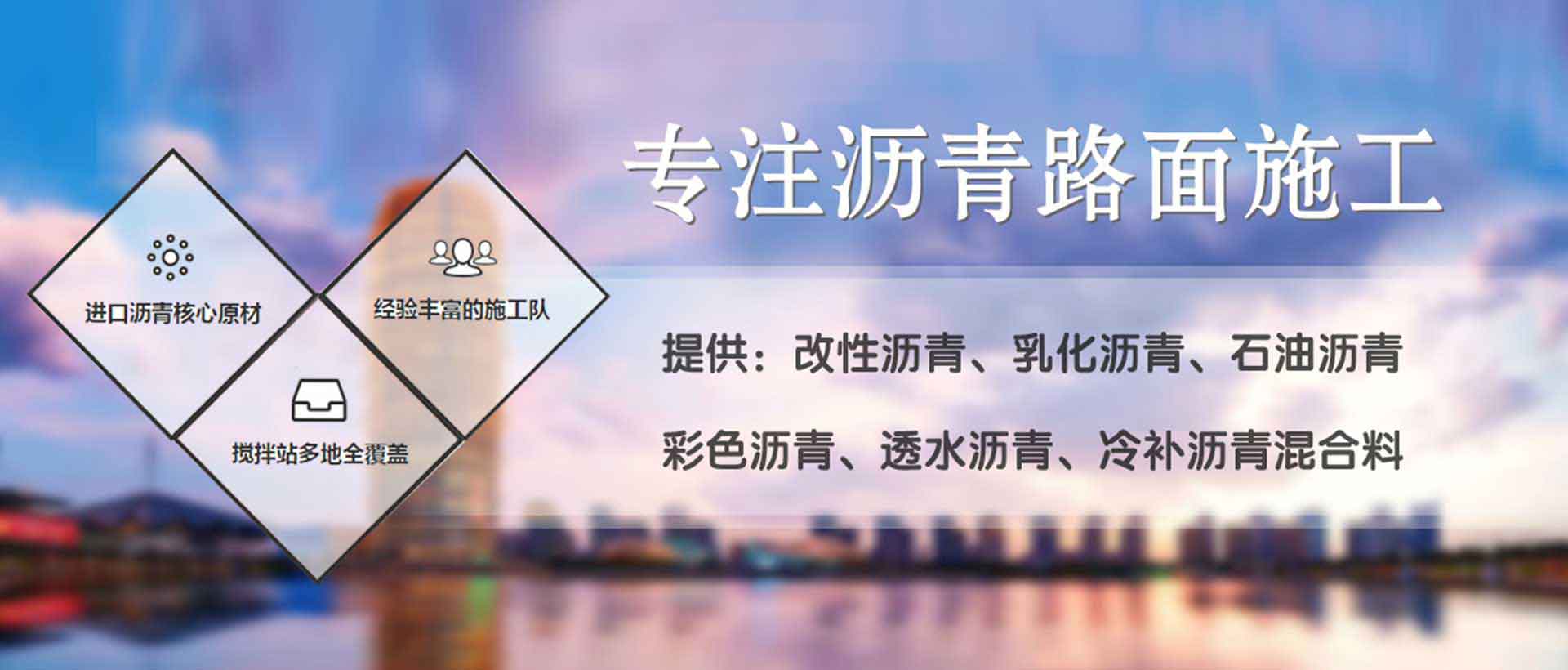 【業(yè)務(wù)范圍】:瀝青路面工程、瀝青道路養(yǎng)護(hù)維修、彩色瀝青道路、TA防滑路面、運(yùn)動(dòng)場(chǎng)地的瀝青混凝土路面及商品混凝土面的設(shè)計(jì)與鋪裝。